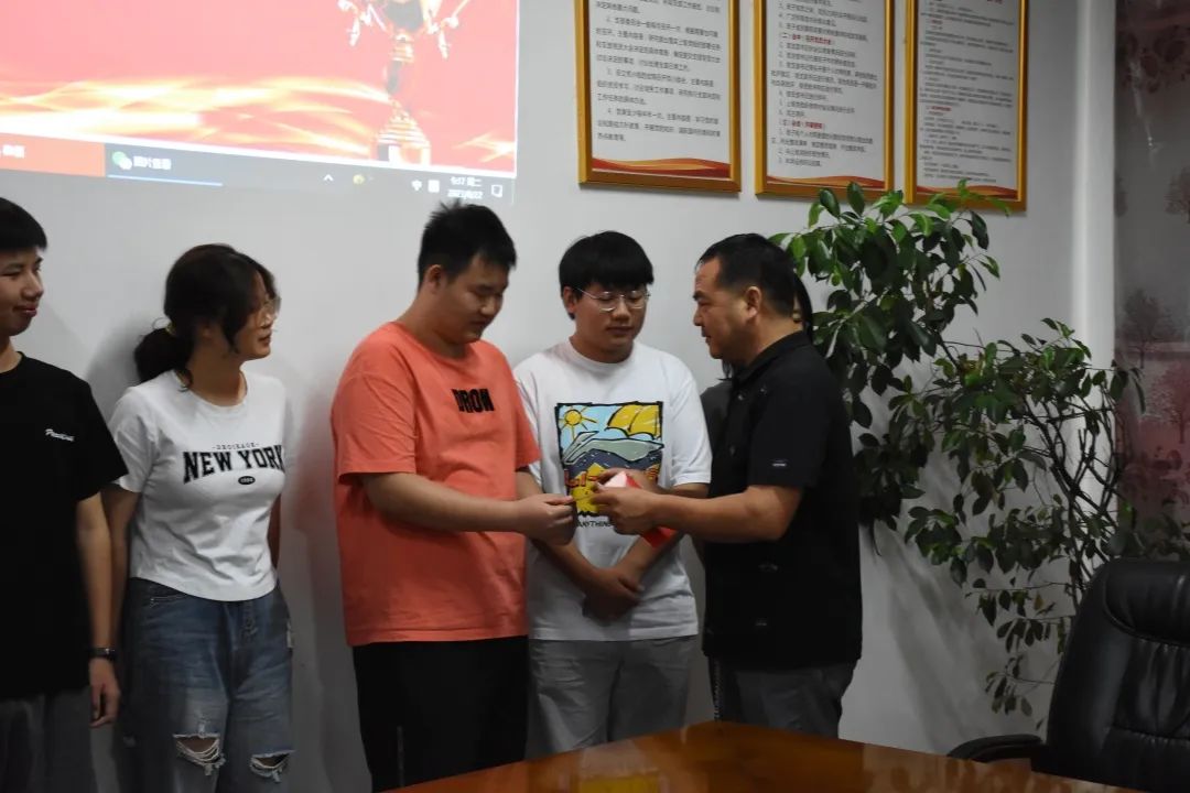 (企業(yè)領(lǐng)導(dǎo)給學(xué)生頒發(fā)獎(jiǎng)學(xué)金)
